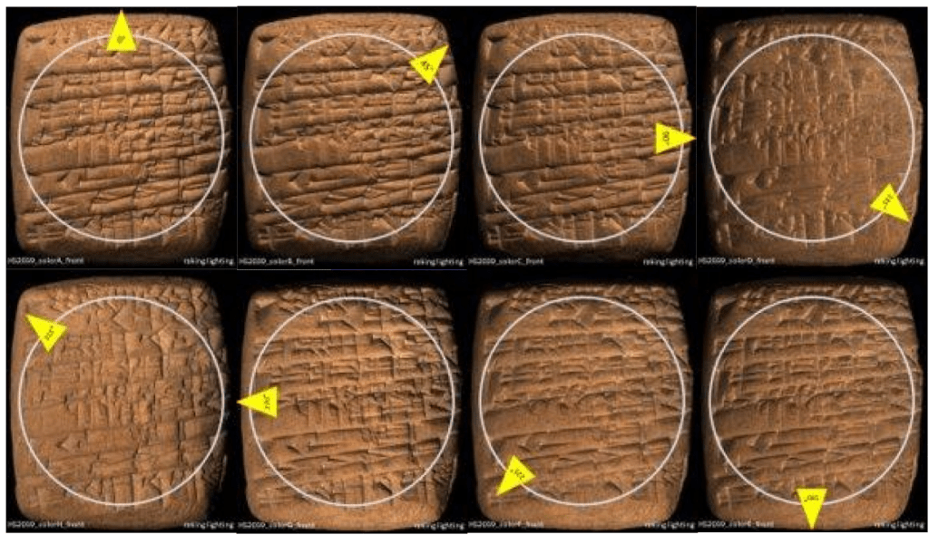 2d plus tablet images are imaged using a special light dome, so that there are 12 visualizations of the tablet: