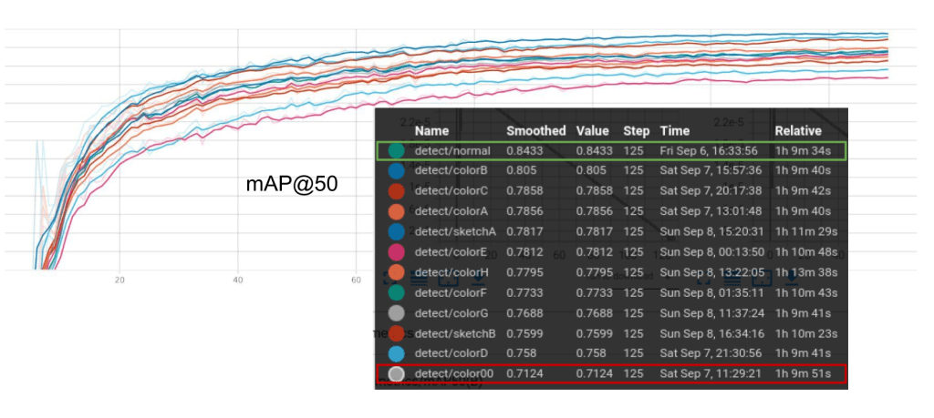 A performance gap of approximately 15% in mAP scores is observed between the best- and worst-performing visualizations. Notably, the Color00 visualization mimics the light source orientation of popular flatbed scans, which have been predominantly used for digitizing cuneiform tablets.